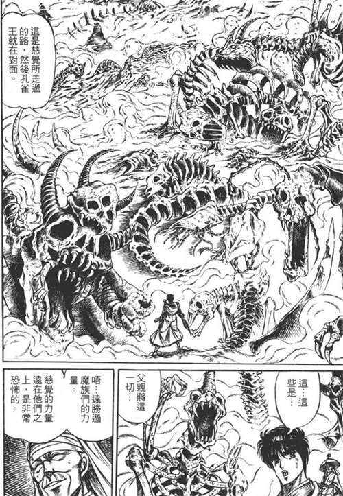 《孔雀王》拥有庞大神魔世界观,这些元素融合在一起,想要看懂漫画,是非常的困难的,想当年还是学生的我们,能真正理解故事的真谛并不容易,可能很多朋友只是为了看图。这部漫画当年的影响力非常之大,作者荻野真在日本掀起了一股退魔漫画龙卷风。