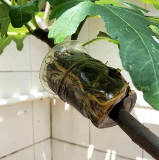 所以养分都会在这里膨大生根儿,成活率几乎百分百,大约一个月左右就会长出满满的根系,等到一个多月的时候就可以得剪下来,这样就可以得到一颗硕大的无花果苗了。