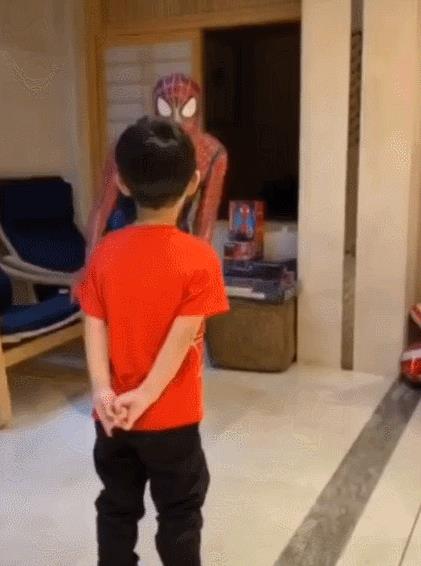 最大的惊喜,就是要扮演成儿子最喜欢的蜘蛛侠!大家觉得朱桢这造型如何?