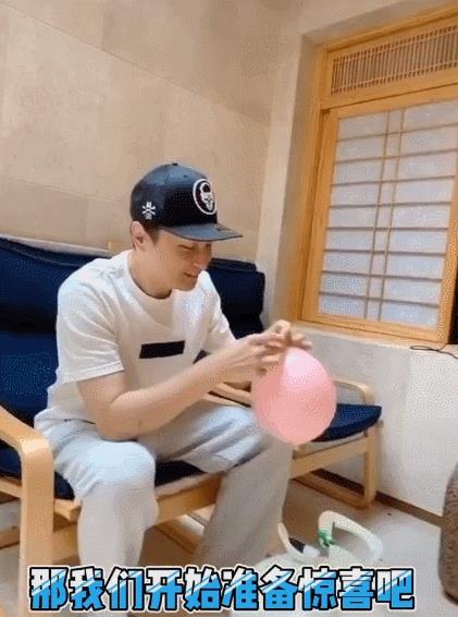 得到答案后,咱们好爸爸朱桢就要开始出动啦!先从打气球开始,认真布置party现场~