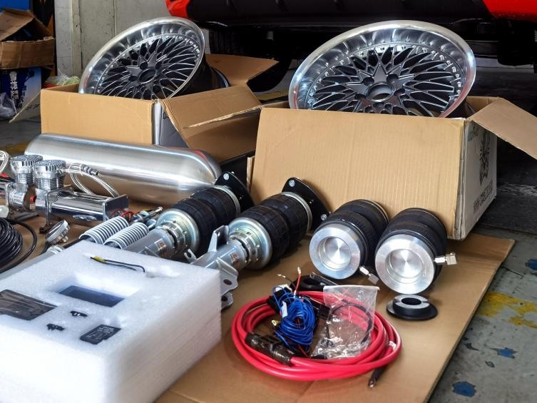 可以看到空气悬挂就是把弹簧更换为了充气得汽包
