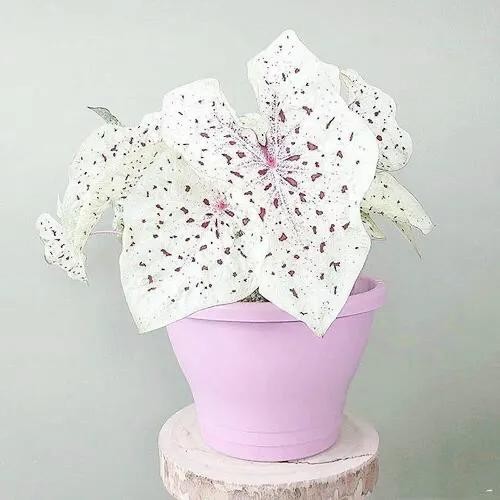 白雪五彩芋·是较为纯洁的品种。 叶片白色,叶脉、叶缘为深绿色,有独特的观赏价值。