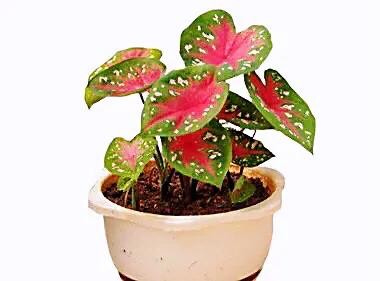 五彩芋·别称:彩叶芋、两色芋。天南星科五彩芋属多年生常绿草本植物。是热带、亚热带常见的观叶植物,品种繁多。其叶如鲜艳的彩色画板,且花形有情趣。6-10月为生长盛期。