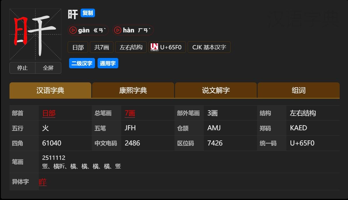 到了楷书阶段,"旰"字的写法基本定型,就是我们现在所见的模样。