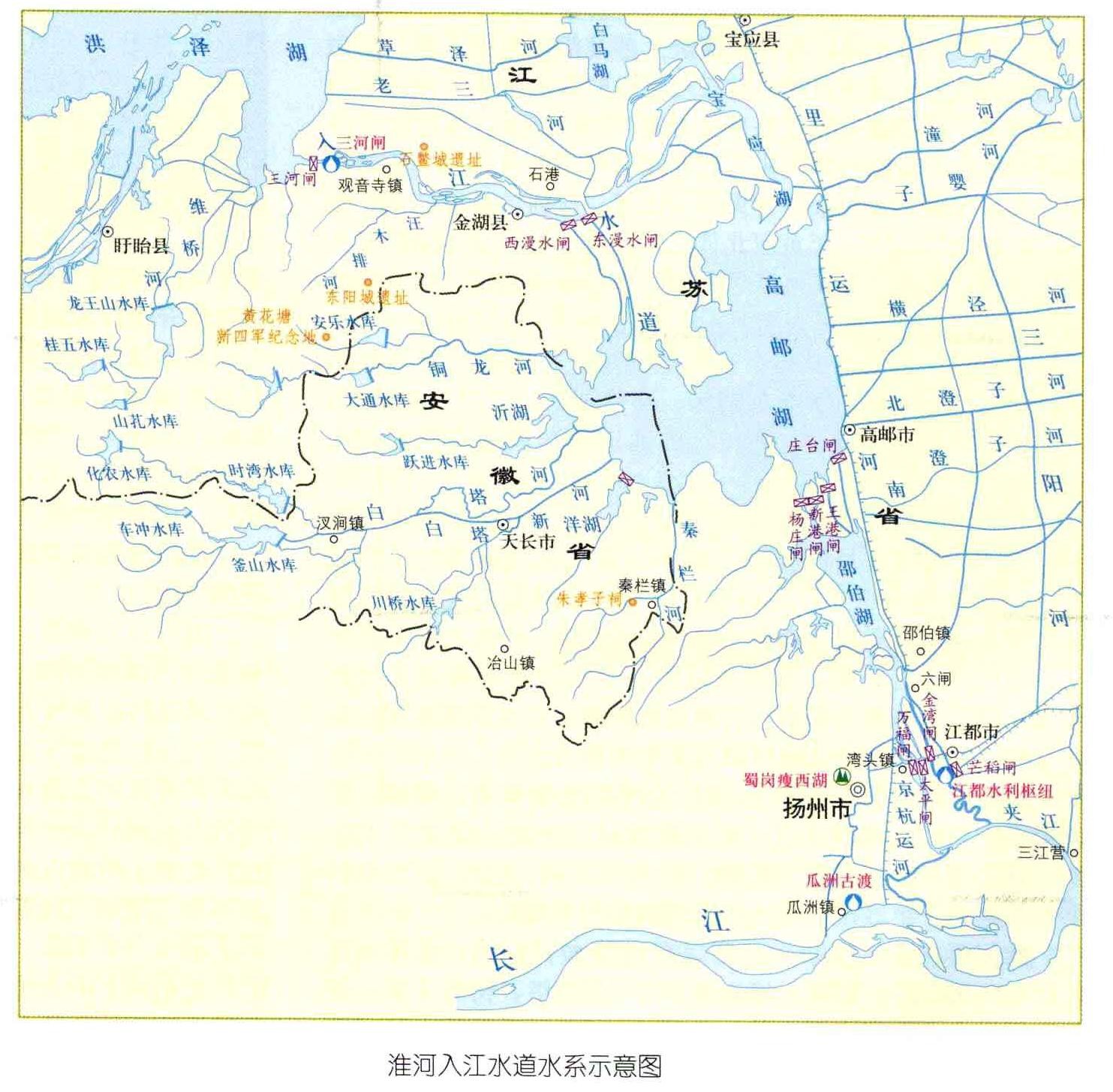 下游:洪泽湖以下,面积30660平方公里,以京杭运河(里运河)为界,西部为高(邮)天(长)区,面积7368平方公里,东部为里下河区,面积23292平方公里。