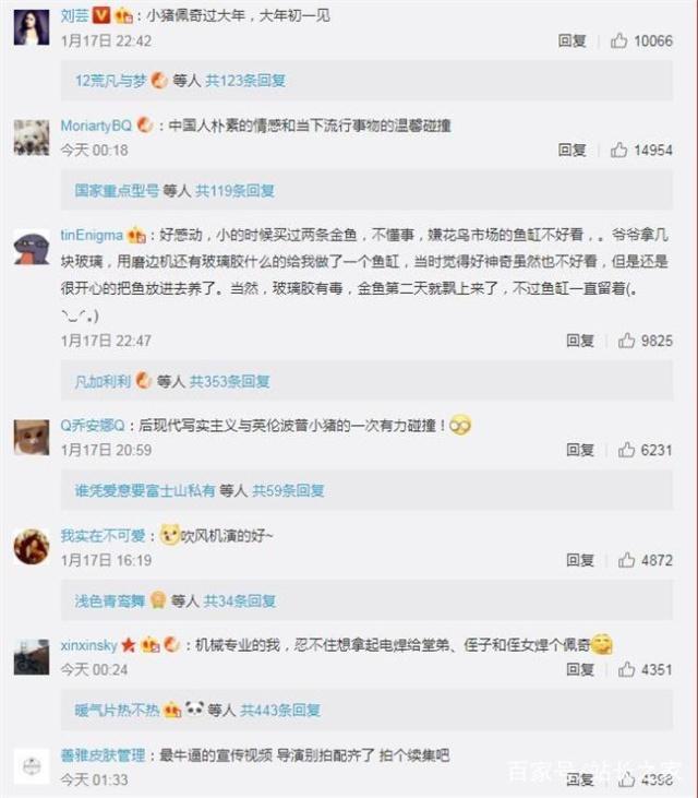 不少网友都看哭了,纷纷表示看完想回家了。有机械专业的网友表示看完后忍不住想拿起电焊给堂弟、侄子和侄女焊个佩奇。更有网友直呼这是中国人朴素的情感和当下流行事物的温馨碰撞。