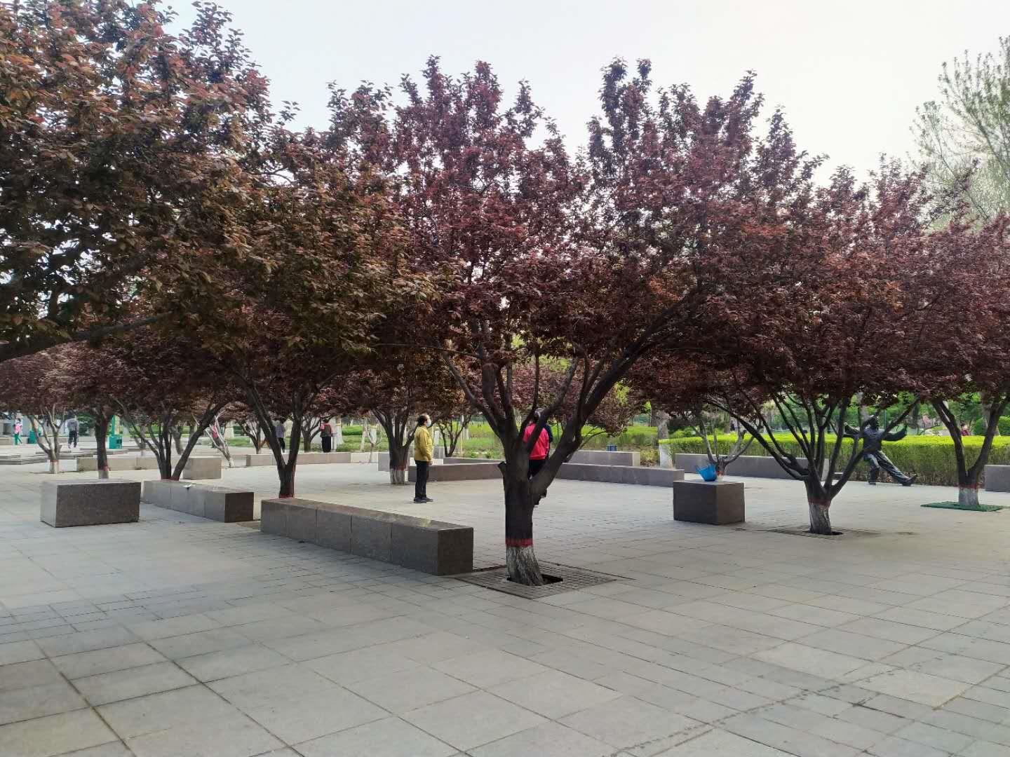东侧的紫叶李广场,我把它称为紫叶李广场是因为它以紫叶李为遮荫树,颜色很是艳丽,树冠形状也美观。