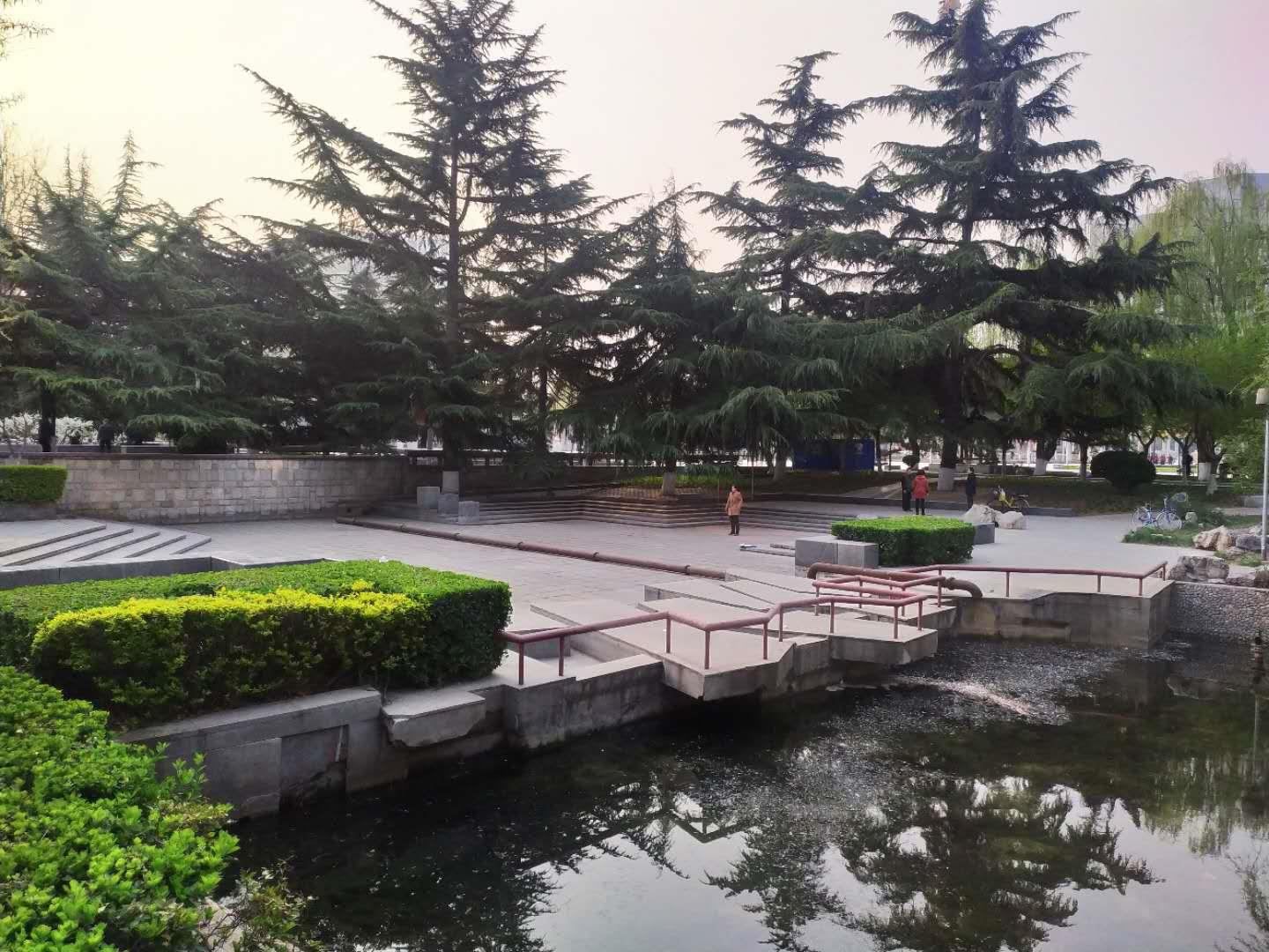 清明假期里去了民广场,春季到了,许多花木竞相开放,正是春游踏青的好时候,春季人民广场的风景还是不错的。人民广场位于石家庄市图书大厦旁边,南临中山路,对面是石家庄市政府,北依长安公园,是以原一宫广场和长安公园为基础,进行整体设计和改造的一座大型城市中心园林式广场,建于2001年,整个广场本着"以人为本,以绿为主"的设计指导思想,充分体现了场中有园、园中有场,既有现代都市景观宏伟之美,又融自然山水园林之秀,整体布局精妙,整体广场心中线为中心呈轴对称,两侧景观布局又各有不同,场园浑然一体,自南向北由毛泽东主席塑像广场、音乐喷泉、叠水及绿林广场等景点组成,地下1.7万平方米的服务设施,将满足展览、购物、餐饮需要,现在又增加了地铁站出口,是一处现代化的敞开式园林景观。