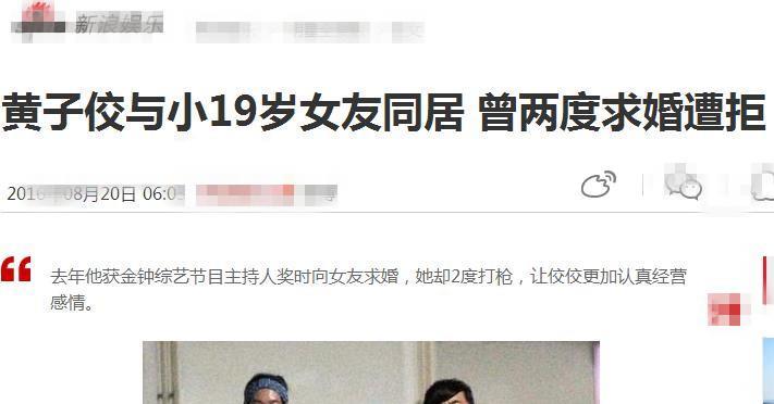 据悉两人相差19岁,15年金钟奖黄子佼获奖的时候曾当众求婚女友,没想到惨遭拒绝,孟耿如称“需要冷静一下”