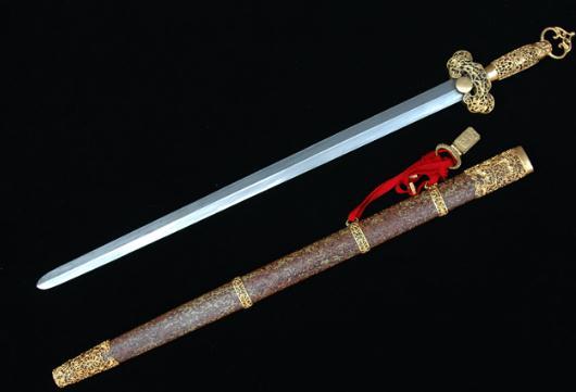 3.剑:有单剑、双剑、短剑之分,剑又称为“百兵之君”。古时候的文人都喜欢配剑,既可以防身健体,还是一件和不错的装饰品。
