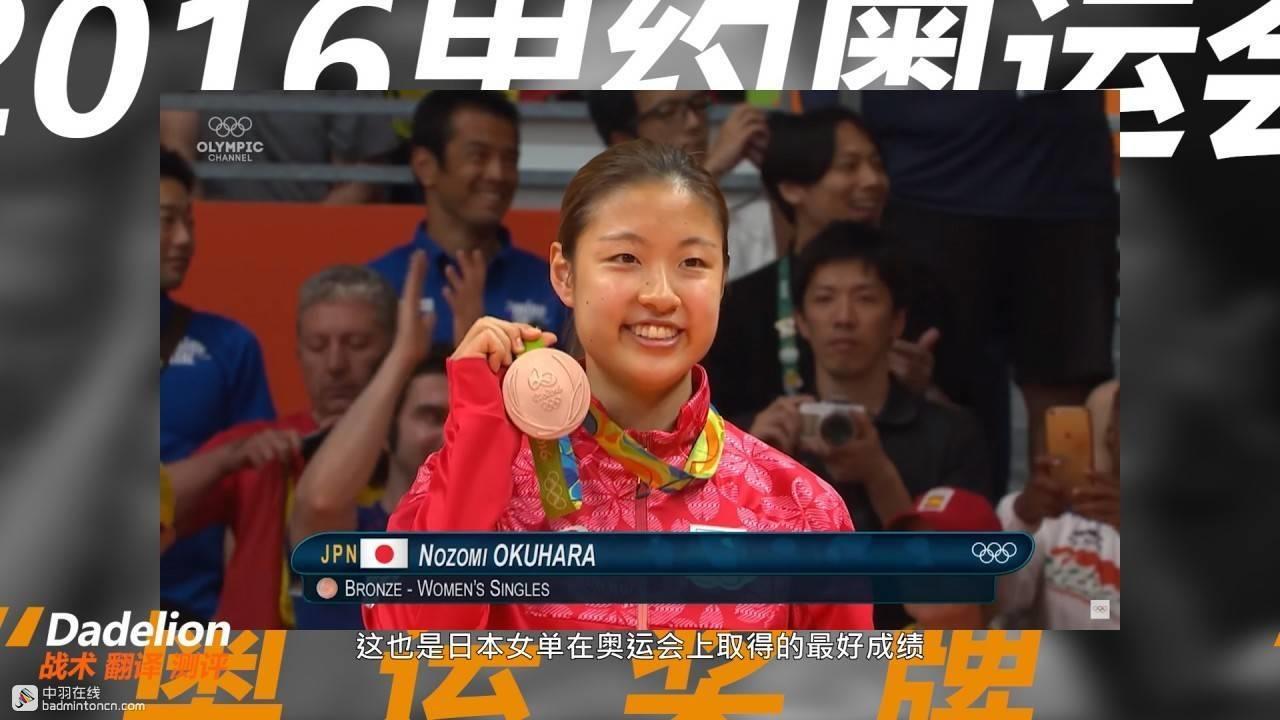 2016年里约奥运女子半决赛,奥原希望的对手是辛度,在此之前的三场比赛都是鏖战三局奥原取胜。接下来的故事大家都很熟悉,日本输掉了比赛,但由于李雪芮因膝伤退赛,奥原希望为日本队斩获一枚铜牌,成功实现了她在高中毕业时写下的目标——奥运铜牌,这也是日本女单在奥运会上取得的最好成绩。