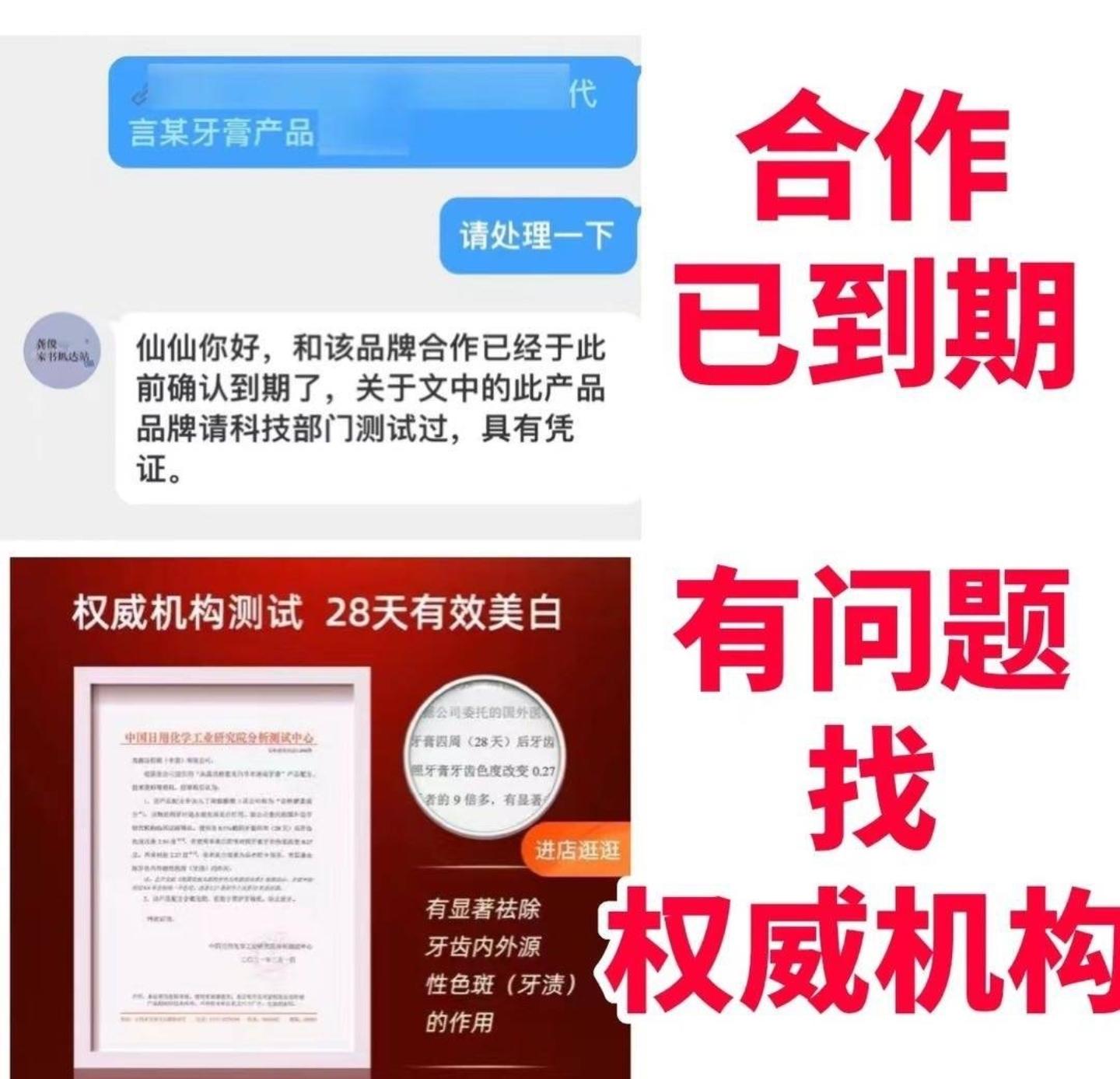 对于虚假宣传和违规的地方,“中国质量新闻网”也做出了相关说明,比如在龚姓艺人宣传广告视频中,第28秒的地方龚姓艺人亲口说了牙膏美白的广告词,后面配文中也出现了“28天实力逆转15年牙渍”的文字,但专家认为这款牙膏产品描述的功效没有针对特定的对象,从广告文理解的话,却是适用所有消费者,涉嫌“功效描述绝对化”。
