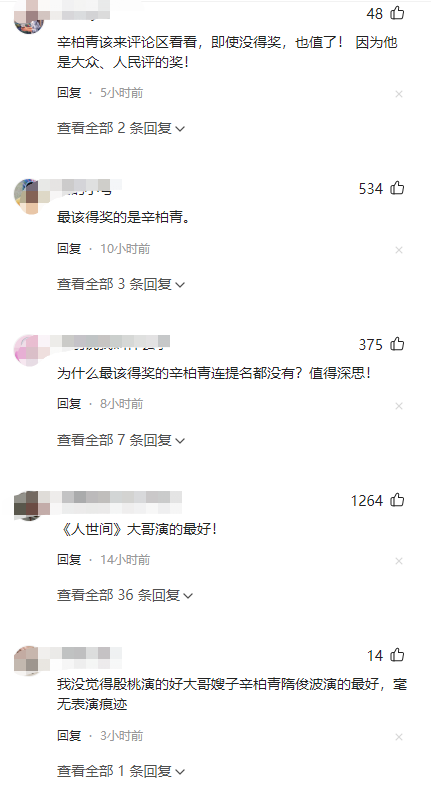 围绕的中心思想出奇统一:“辛柏青这么好的演技为什么没有提名?”