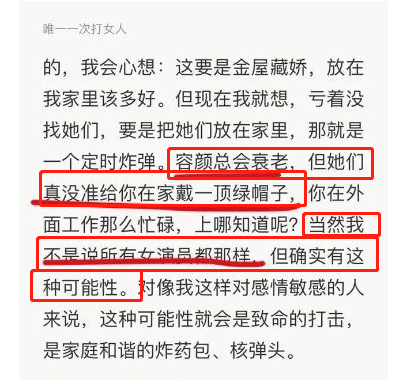 书中描写了自己打女朋友的瞬间,还发布了女明星容易出轨的极端言论。