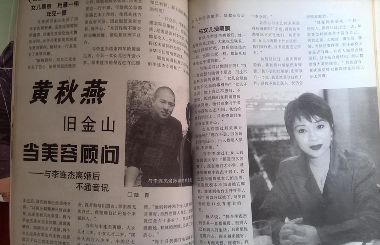 黄秋燕选择成全,她和李连杰离婚并继续留在美国生活。