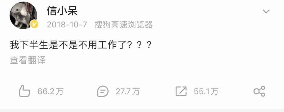 而彼时的信小呆在卫生间,看到消息也随手一转,还加上了一句调侃:后半生靠此一搏。