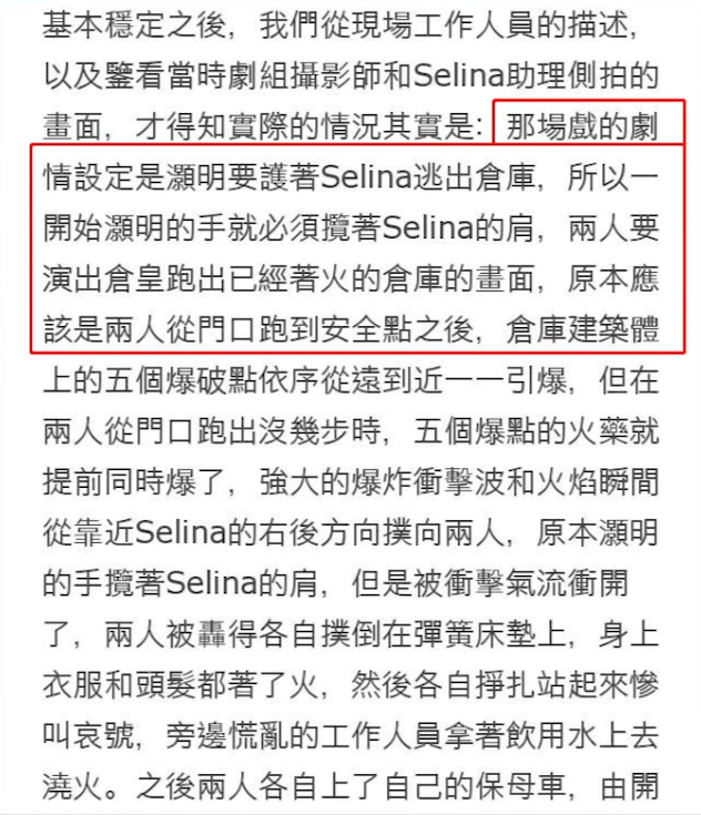 那场戏被安排在下午,根据戏前安排,应该在两人跑出仓库后再爆破,不料两人还没来得及跑出来,竟然就已经爆破了。