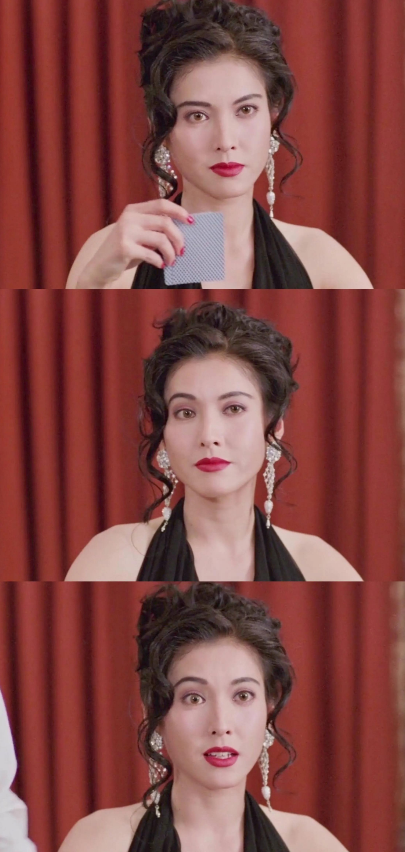 还梳起了当时最流行的卷发丸子头,留着两边长长的鬓角,虽然是个反派,可一出场就让人移不开眼睛,让身为主角的钟丽缇也黯然失色。
