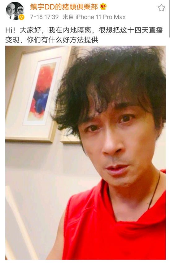 他还在社交平台上虚心问网友如何可以把这14天的隔离经历变现,看来家庭的温情终于让这个钢铁直男变成了绕指柔。