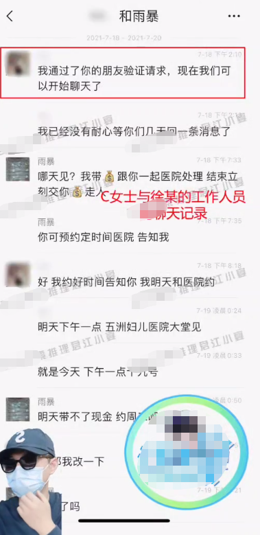 聊天记录显示,此时的时间已经来到了7月18日,距离C女生打掉孩子已经过去了13天,但孩子已经打掉这事儿蔡徐坤方面并不清楚。