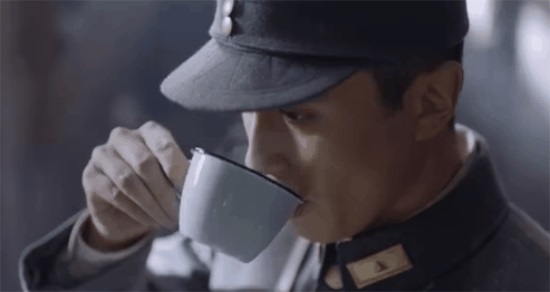 高伟光饰演的师长,敌人的炮火都快落在头顶了,他还在端着杯咖啡一口一口的细细品味。