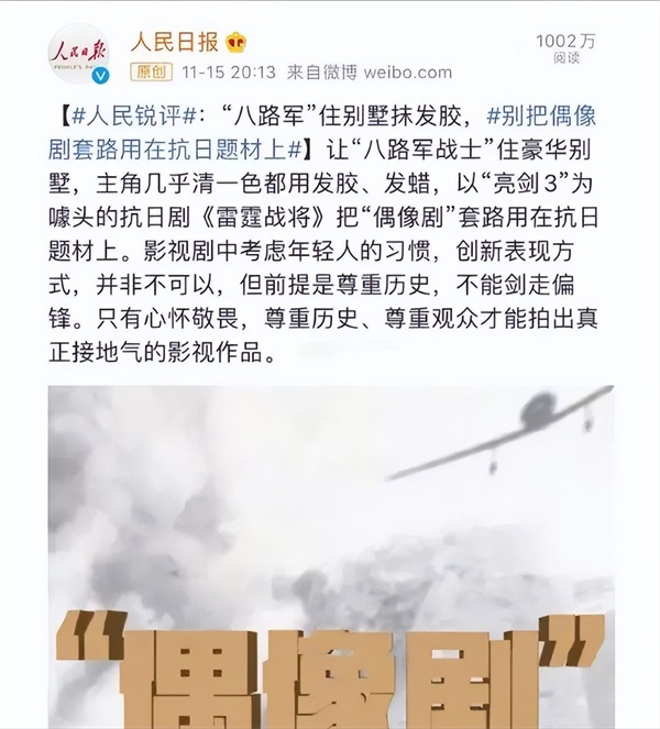 在万众吐槽抵制下,这部剧仅仅上映5天便惨遭下架,还换来了人民日报的点名批评: