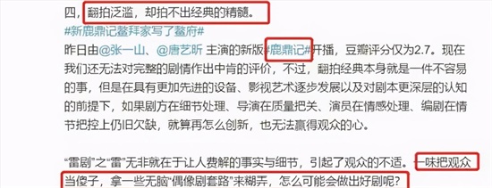 人民日报点名批评此剧剧情过于浮夸,演员用力过猛,翻拍剧本来为了重塑经典,经典却被他们的翻拍毁坏。