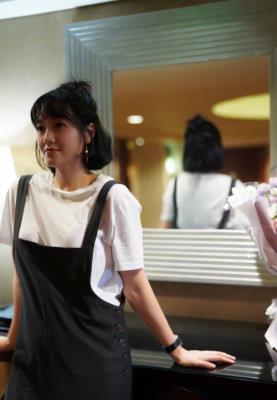 朱丹还戴着一顶与小短裙色系相同的空顶帽,再扎上一个半丸子头,这样的搭配既运动时尚,又显得年轻有活力。同时,半丸子头还能修饰脸型,使脸部看起来更加和谐。