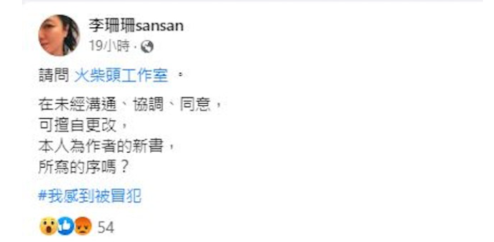 一向好脾气的她,突然动怒质问出版社。她怒斥对方在未经沟通、协调、同意的情况下,擅自更改她为作者新书写的序,她感到被冒犯了。