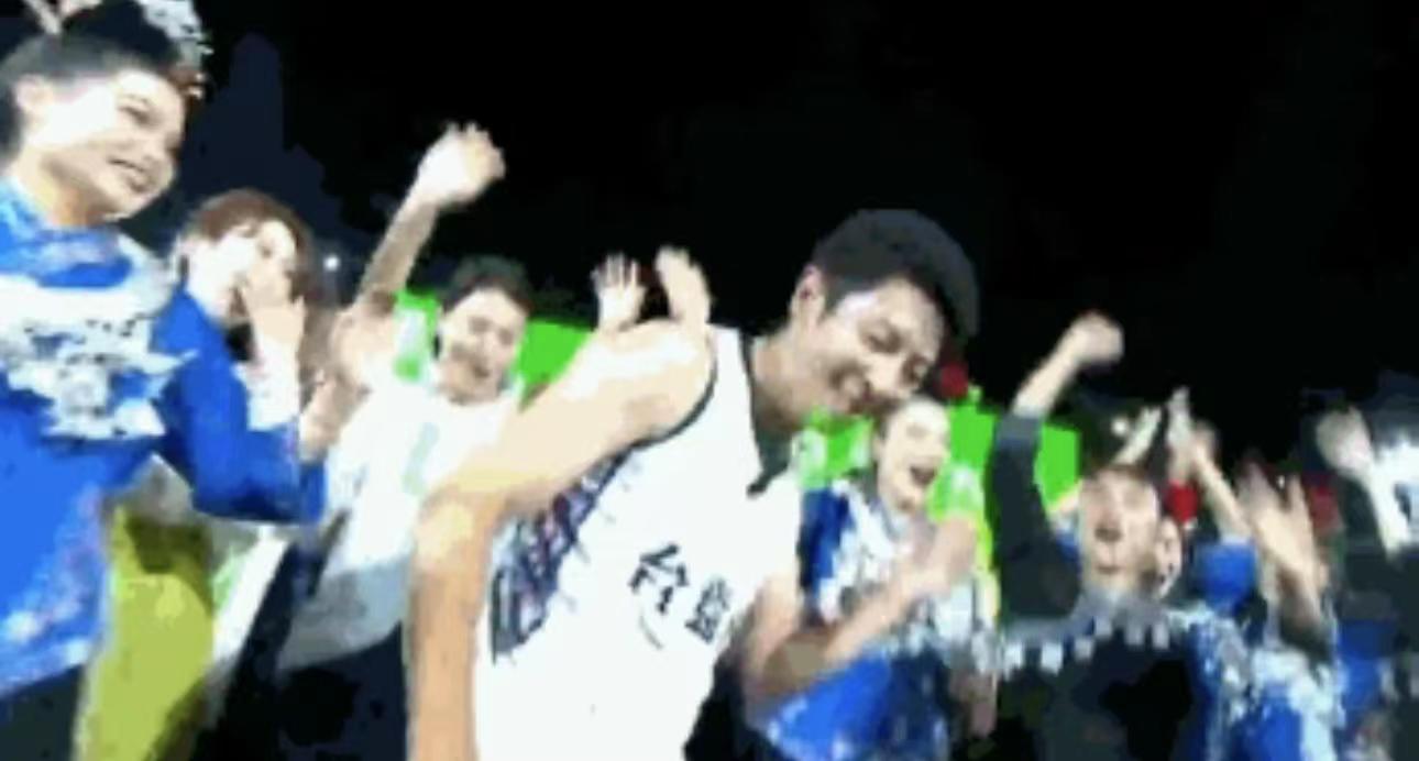 另外,他还一度站在观众席中,一手拿着不锈钢脸盆,一手拿着木棍,激动地“敲锣打鼓”。