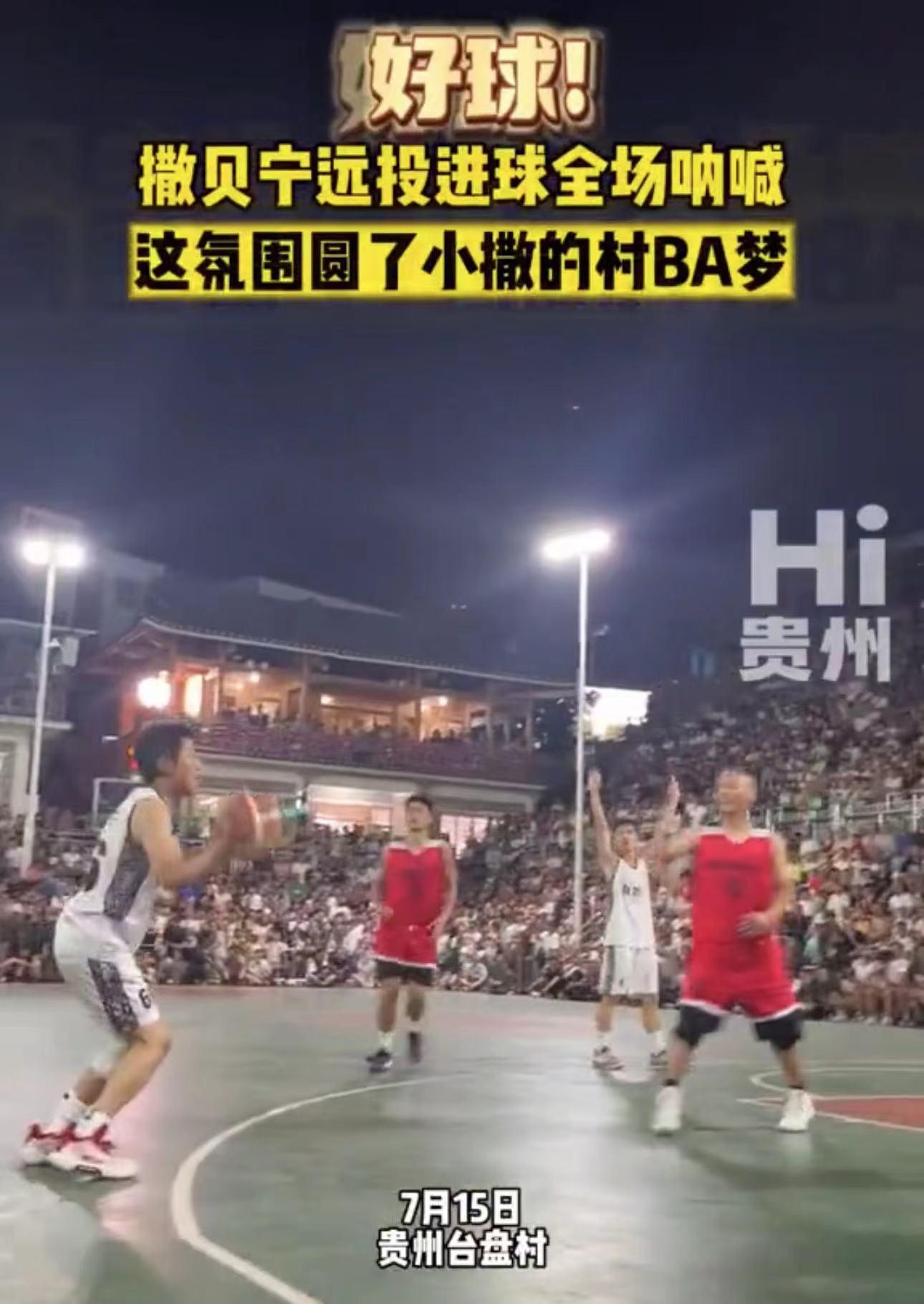 与此同时,贵州村BA也越来越火爆,就连撒贝宁也忍不住来到贵州台江县台盘村,感受一下村BA的火热氛围。