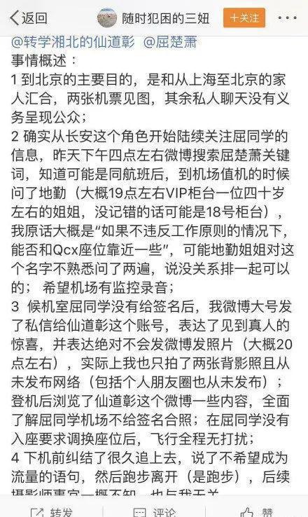 结果他口中那个打扰了他私人行程的 " 粉丝 " 公开澄清自己不是私生,乘坐同一航班只是碰巧。