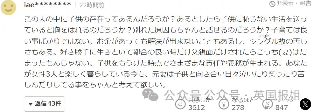 虽然网友们有这种说法,但退一步看,当年真正被打入谷底的,难道不是他的前妻杏和三个无辜的孩子吗?