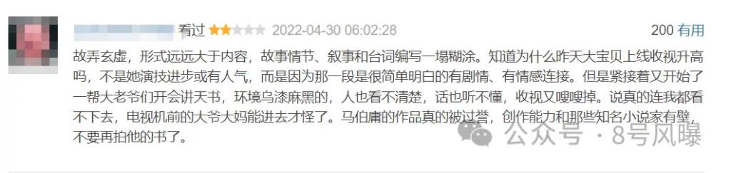 有人觉得这部剧槽点太多,加之开机的时候宣传这个故事出自马伯庸之手,加上路阳的《风起陇西》和黄轩的《风起洛阳》都是改编自马伯庸的小说,所以错以为《天启异闻录》也是马伯庸的作品,便开始发文吐槽马伯庸。