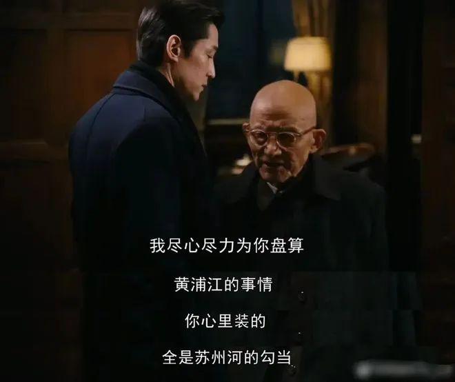 而且他说台词也是中气十足,比如对宝总说的那句:"我尽心尽力为你盘算黄浦江的事情,你心里装的全是苏州河的勾当",