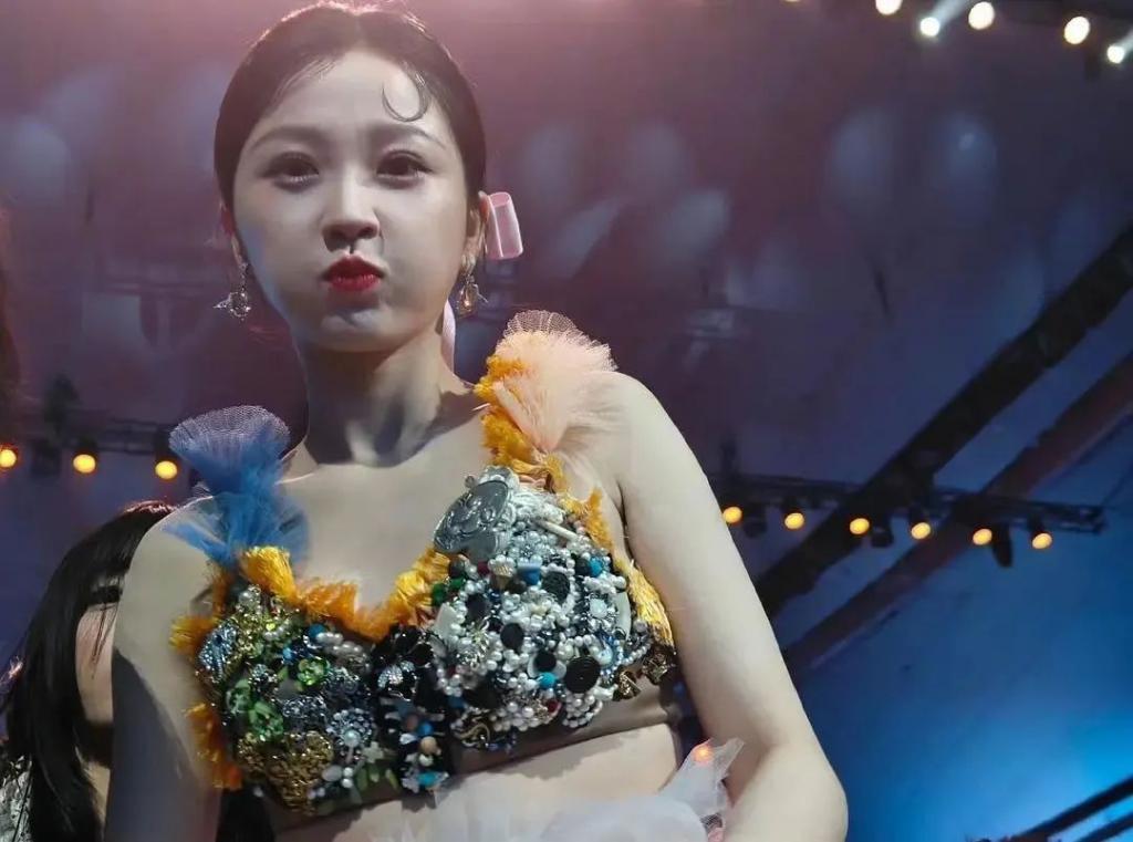 在内场,虞书欣换了一条裙子,嘟嘟嘴卖萌,虞书欣的脸跟年龄,已经不适合装可爱了。