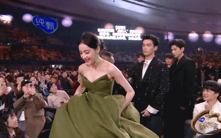 而热巴这边并没有走红毯,直接进到了内场。当天热巴穿了一件绿色抹胸裙,戴着非常华贵的耳环,由于两人领奖安排在了一前一后,于是有了以下名场面。