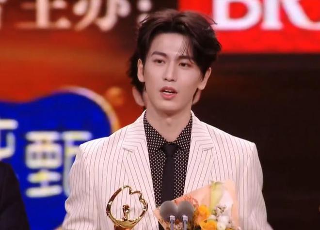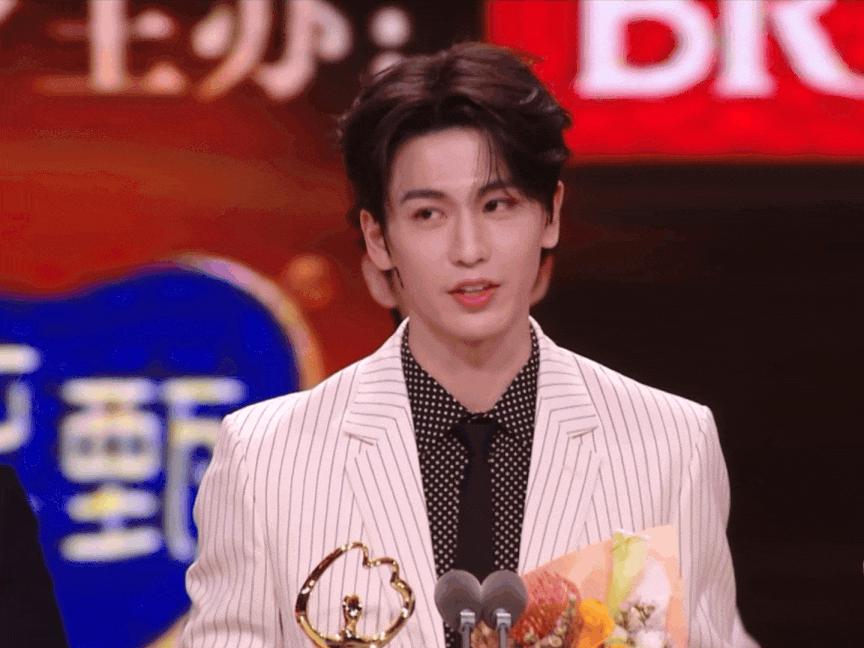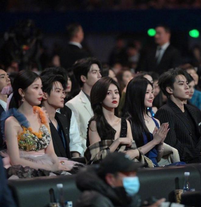 黄景瑜上台领奖时,热巴就在台下观看,背影特别明显,也算是罕见同场同框啦,就是不知道是不是团队提前打招呼了,导播并没有切镜头。