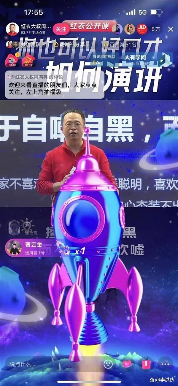 这原本只是周鸿祎公开课中极小的一部分,却没有想到,郭德纲曾经的爱徒曹云金竟直接在其直播间刷 " 火箭 " 特效进行打赏。