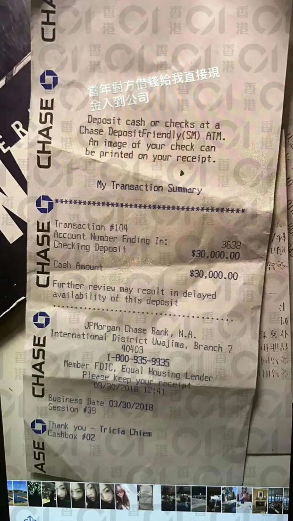 对此媒体向 CHRIS 查证,她提供了 2018 年 3 月的入数纸及银行月结资料,回应自己早就还钱,更直指未与该男子发生关系: