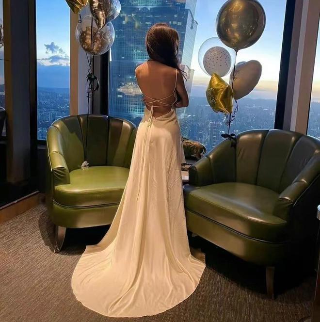 作为小寿星,Grace 无疑是全场焦点,当天她身穿白色礼服现身,前方长度只到大腿,后方则是拖地设计,Grace 的那双修长美腿一览无余。