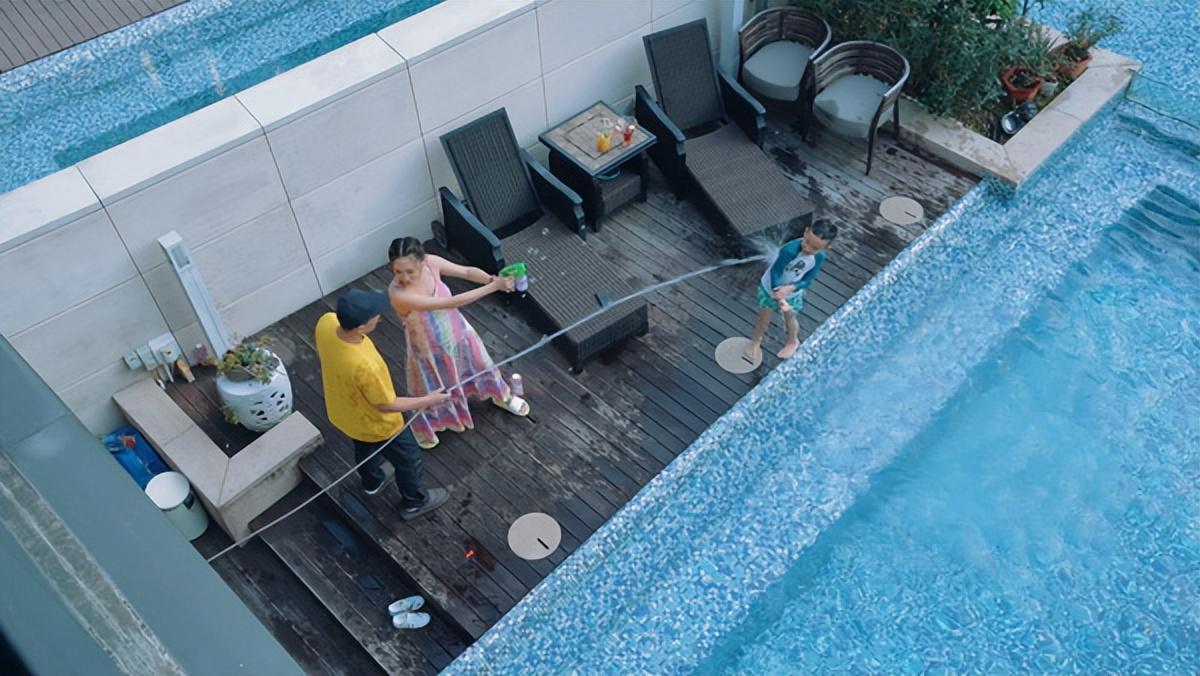 豪宅顶楼还有一个超大的露天游泳池,站在这上面,就能360°观赏维多利亚港。