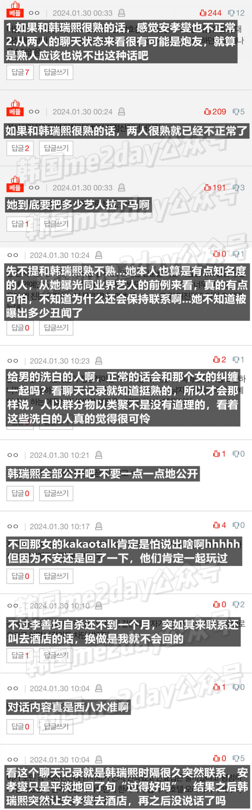 不过之后有网友在评论区又公开了韩瑞熙和安孝燮的 kakaotalk 截图,截图中韩瑞熙时隔很久联系了安孝燮,甚至约安孝燮去酒店 ...