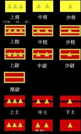 后来1945年以后,民国军队采用美式领章以后,蒋介石是特级上将五颗五角星,一级上将是四颗五角星,二级上将是三颗五角星。