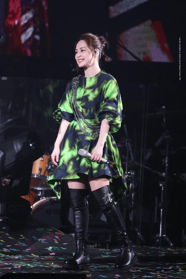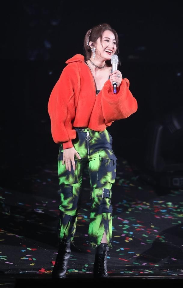 容祖儿在关智斌第一场演唱会上穿得非常活泼,这也非常符合容祖儿大大咧咧的性格,这种彩色亮面的裙子一般只有在活动上才看得到,五彩斑斓的圈子和旁边一身驼色大衣的关智斌比起来简直就是两个极端,不过容祖儿的好身材和颜值还是撑起了这条裙子,这两场演唱会的造型也只有容祖儿的比较正常了。
