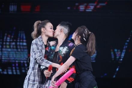 关智斌演唱会港星云集,容祖儿红唇马尾帅气十足,最后献吻太甜蜜