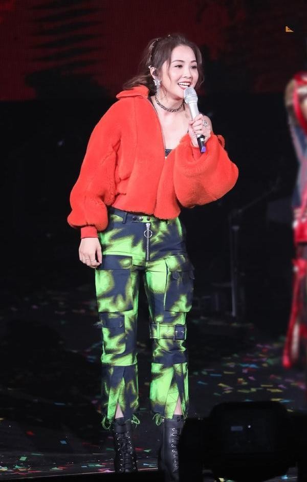 Twins姐妹花虽然一直都没有开自己的个唱,但是频繁出席别人的演唱会也让她们的粉丝过了一把瘾,我们知道演唱会的服装都是比较夸张亮眼的,但是姐妹花这身红配绿的棉袄装我真的是看不懂,阿Sa橘红色羊绒外套搭配迷彩工装裤,阿娇绿黑色A字连衣裙是有姐妹装的感觉,但是真的让人感觉不到好看。