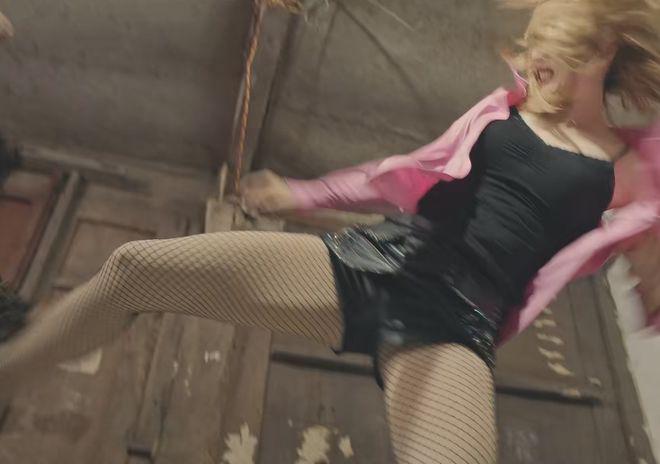 但哪怕是假扮成吸毒的小太妹,也不应该弯腰驼背,走路外八,且壮硕得跟个男的一样吧!