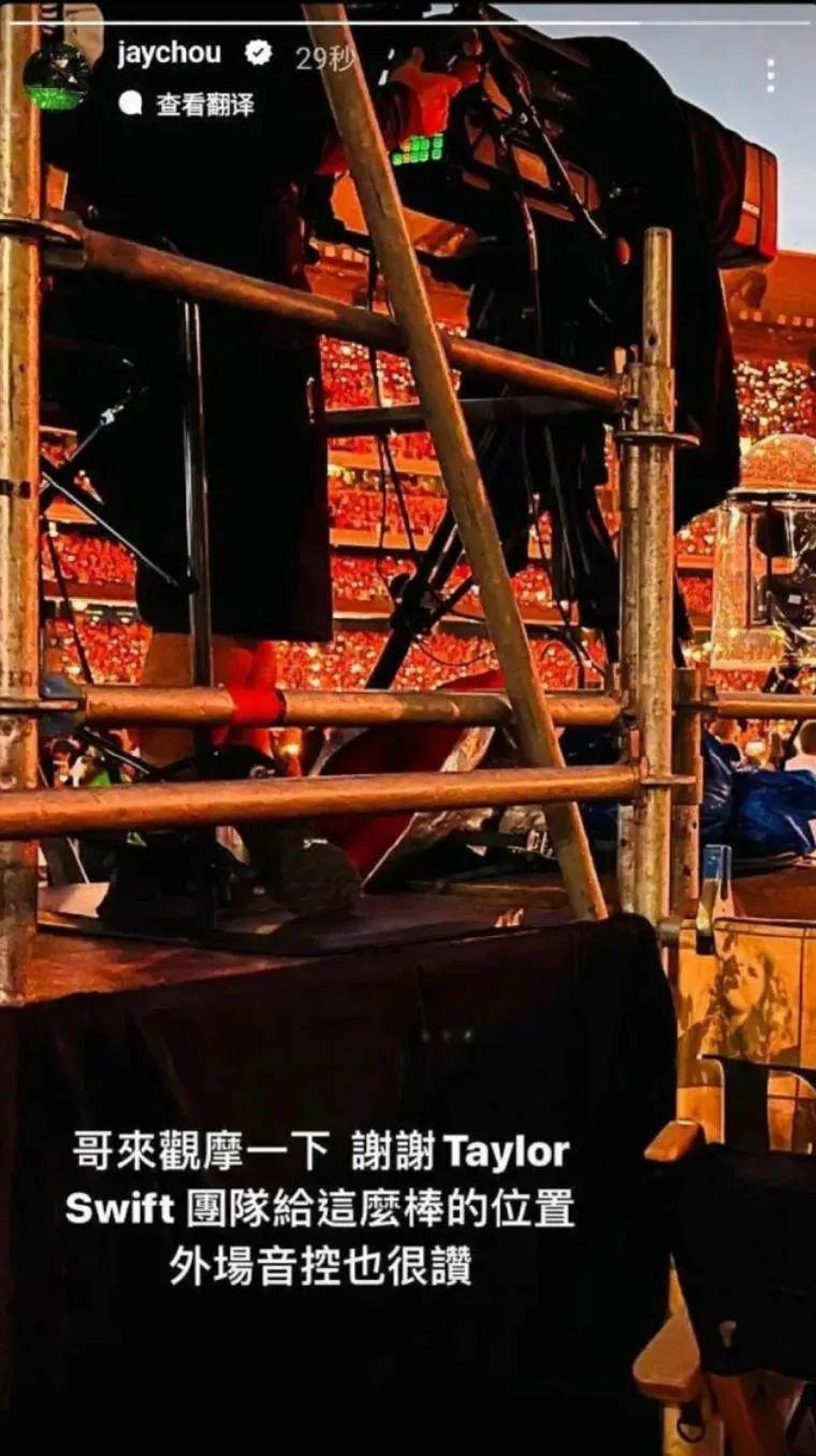 周杰伦去了现场,并在演唱会结束之后发状态表示感谢霉霉团队安排位置 ↓