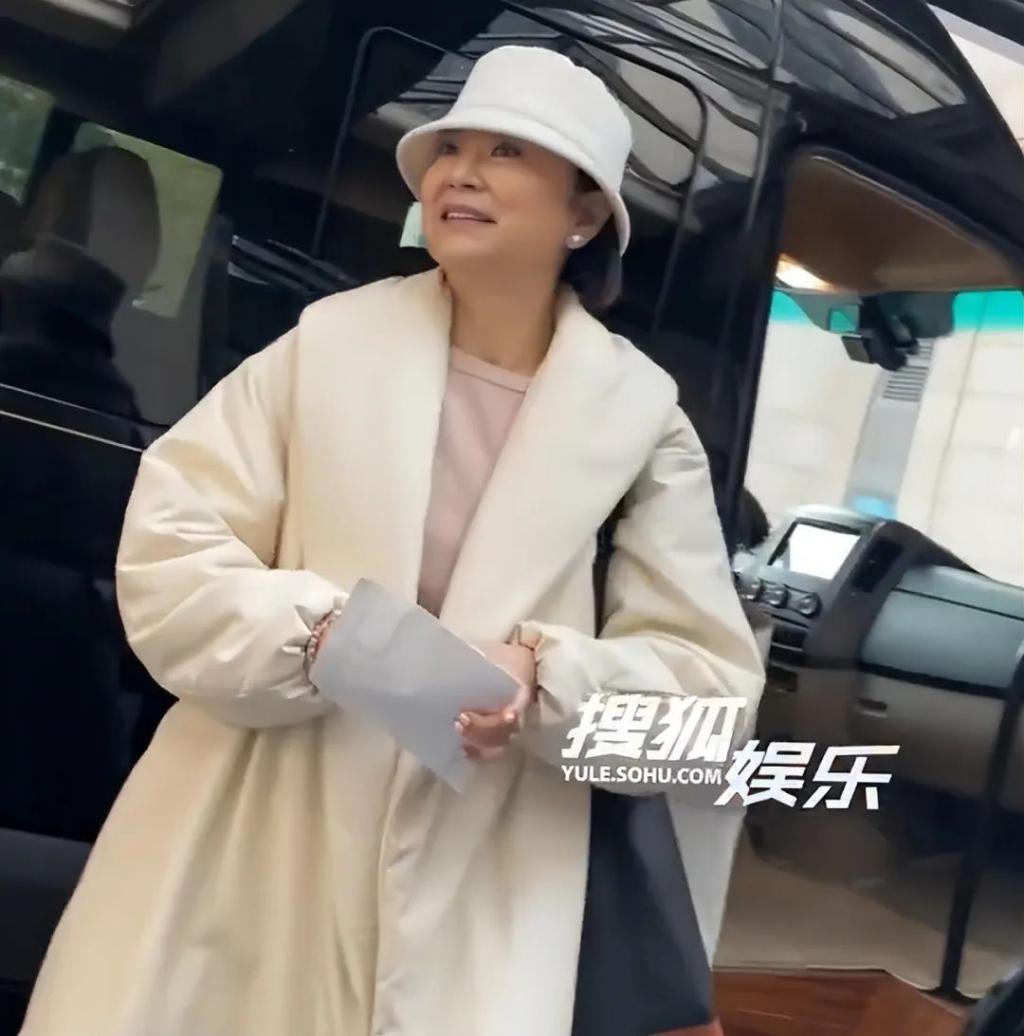 从穿搭可以看出依旧有明星范,可随意的发型和妆容,却能感受到她毫无明星架子。